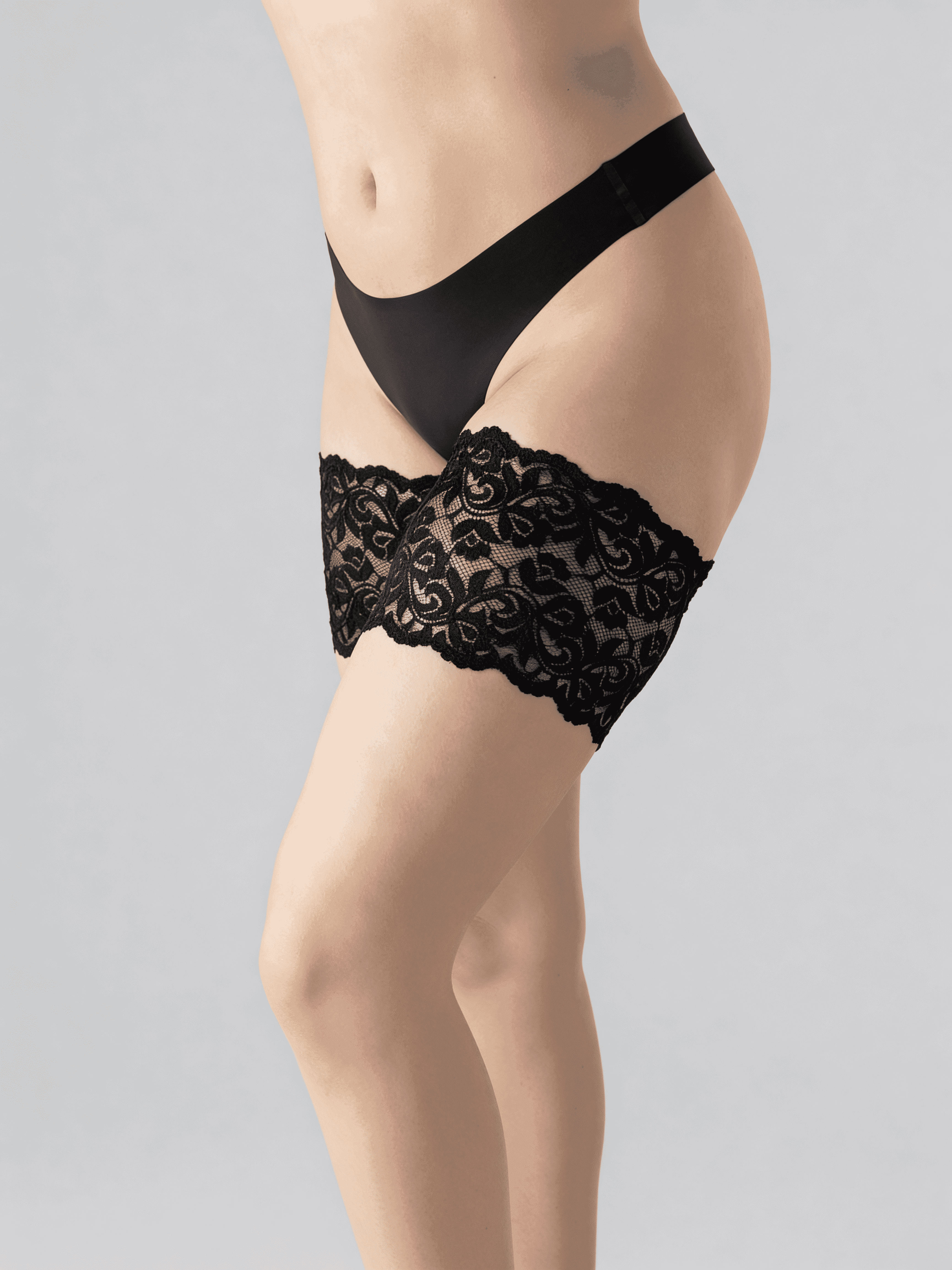 Viele Frauen stehen in der heissen Jahreszeit oft vor dem Problem der scheuernden Oberschenkel. In diesem Fall kommen Bandaletten zur Rettung! Dabei handelt es sich um Bandagen aus zarter Spitze mit Blumenmuster, die die Beine schmucken und Sie femininer aussehen lassen. Optisch ahneln sie Strumpfen, aber sie unterscheiden sich dadurch, dass sie 14 cm breit sind und problemlos einen grosseren Teil des Beins bedecken konnen. Dank der Silikonbasis, d. h. zwei Bandern oben und unten, halten sie fest, rollen nicht und verrutschen nicht. Mit diesen Bandagen werden Sie das Reiben zwischen den Oberschenkeln fur immer vergessen und konnen im Sommer gerne Rocke und Kleider tragen