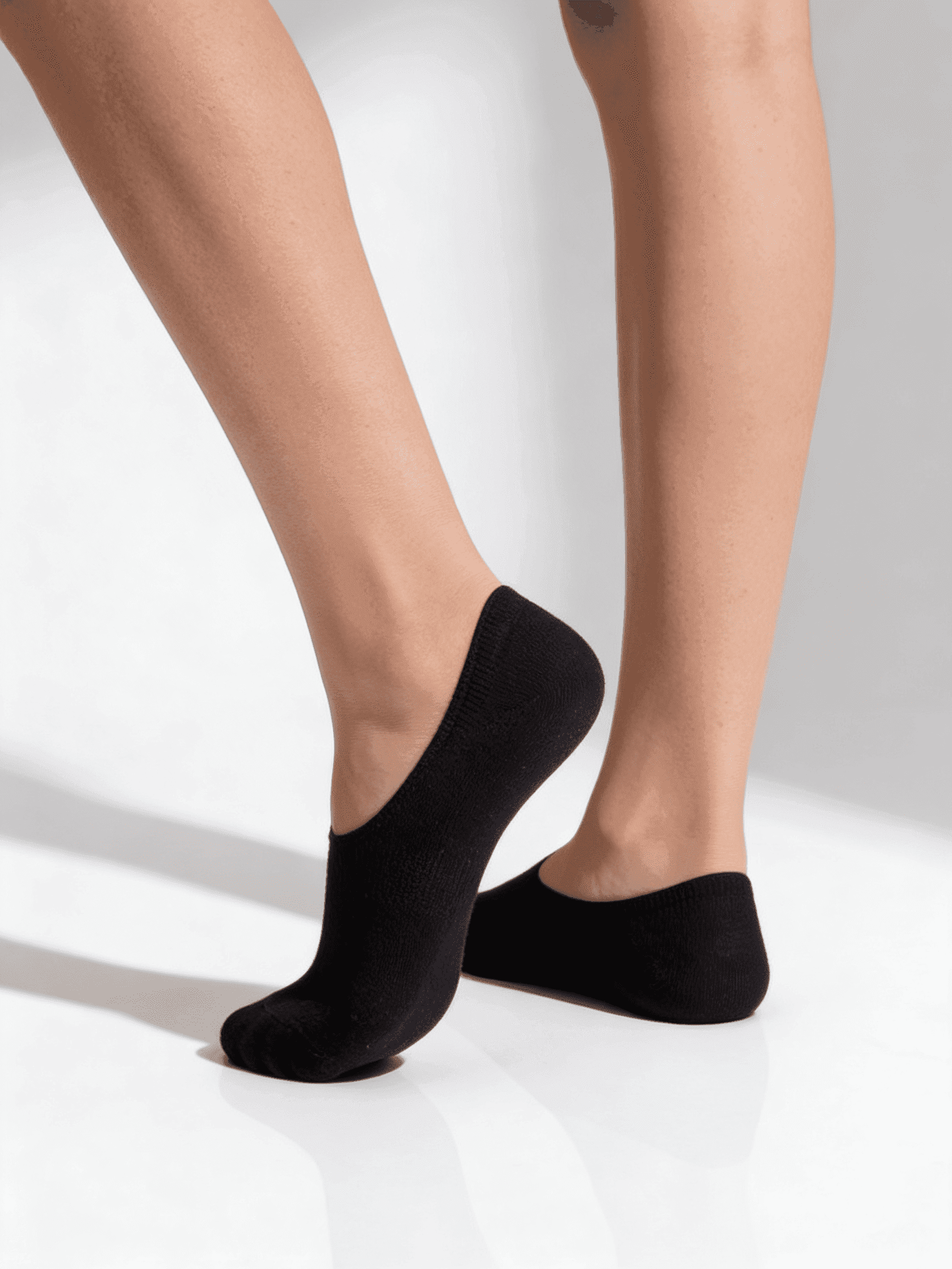 Können Sie sich auch im Sommer nicht von Ihren Lieblingssneakers trennen? Unsere Socken sorgen für perfekten Komfort in dieser heißen Jahreszeit! Die Socken sind unsichtbar und wurden speziell für Frauen entworfen. Das elastische Band dehnt sich perfekt und drückt nicht an den Beinen. Das Baumwollmaterial sorgt für eine hervorragende Belüftung des Fußes. Silikonelement für einen sicheren Halt an der Ferse und um ein Verrutschen der Socke zu verhindern. Die Nähte sind so gestaltet, dass sie keine Unannehmlichkeiten verursachen. Sie passen zu jeder Art von Schuhwerk. Die schwarze Farbe verleiht Ihrem Look einen Hauch von Raffinesse und Strenge und passt perfekt zu allen anderen Farbtönen Ihrer Kleidung.