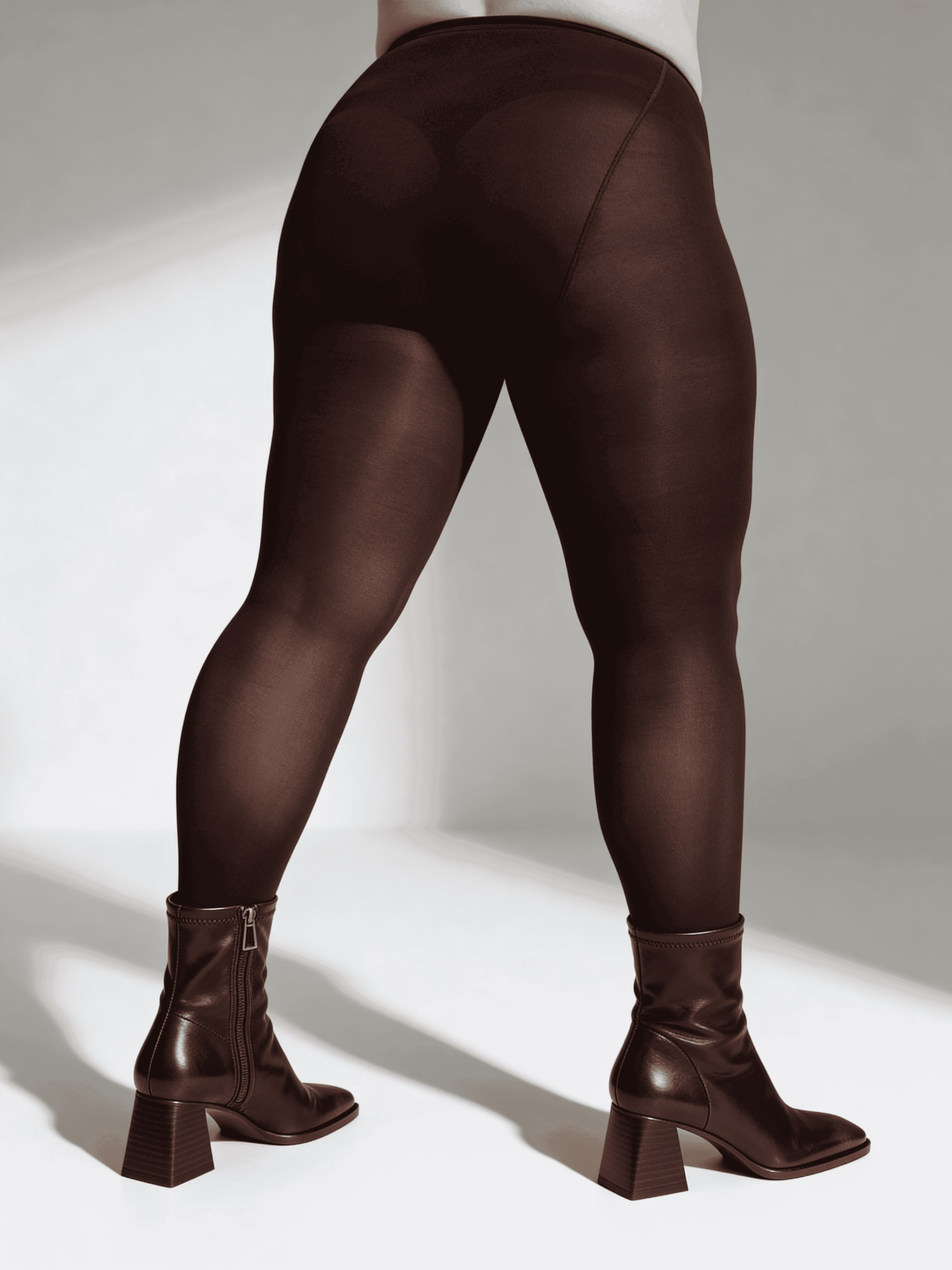 Klassische Strumpfhosen für Damen mit kurvigen Formen mit einer Dichte von 70 den, gefertigt aus 3D-Mikrofaser. Sie kommen ohne Shorts sowie ohne verstärkte Spitzen und Fersen aus. Die Strumpfhosen haben eine matte, undurchsichtige Struktur und bestehen aus elastischen Mikrofasern. Sie bieten eine gleichmäßige Oberfläche über die gesamte Länge, flache Nähte und einen hygienischen Baumwollzwickel.