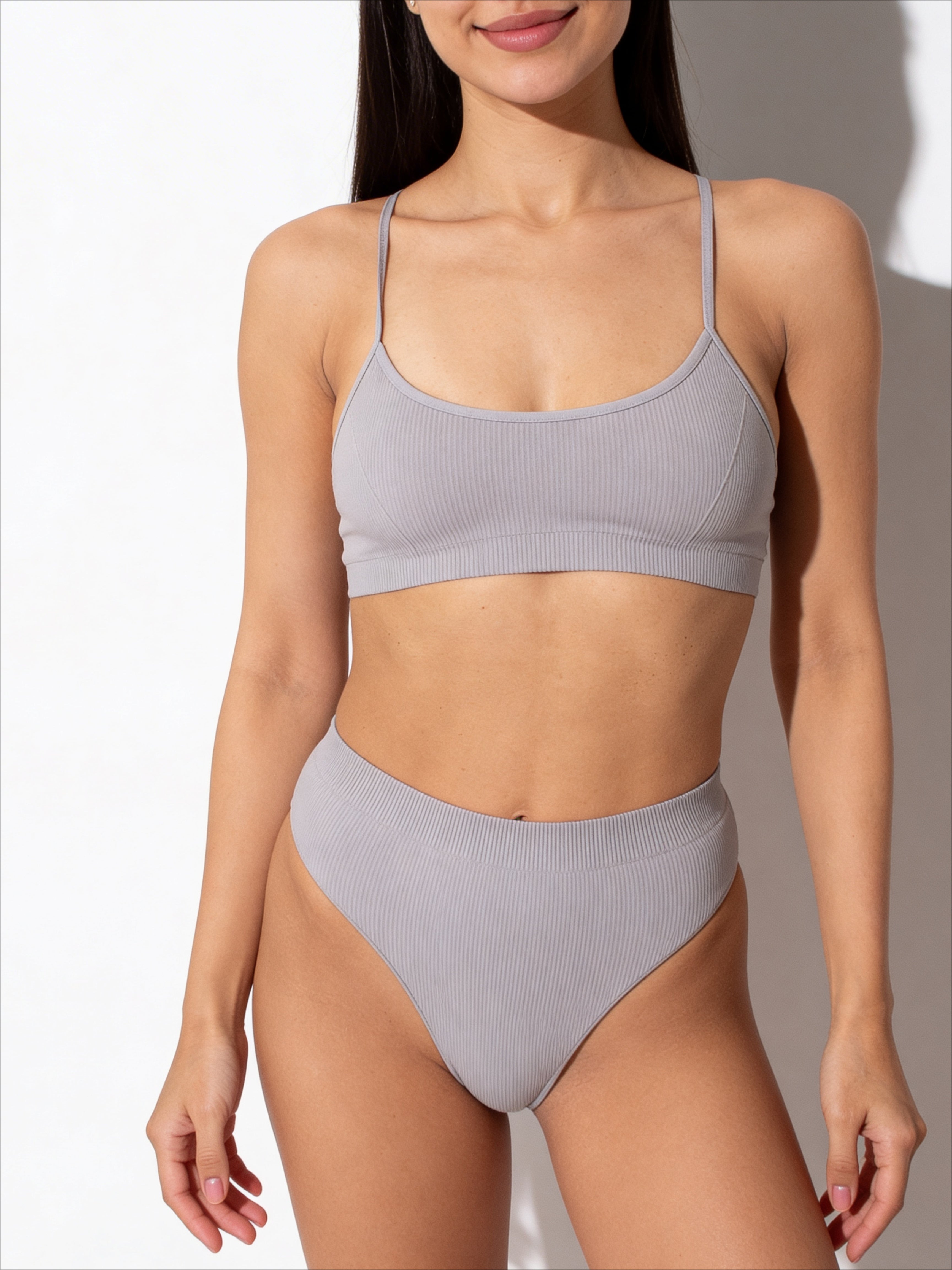 Brasilianischer Damen-Slip mit geripptem Design. Nahtloses Modell mit einem Reliefmuster. Universelles Design und enge Passform. Breiter bequemer Gummibund. Die Passform ist mittel. Der Stoff ist feuchtigkeitsableitend und lässt die Haut frei atmen. Neue, verbesserte Linie von nahtloser Unterwäsche.