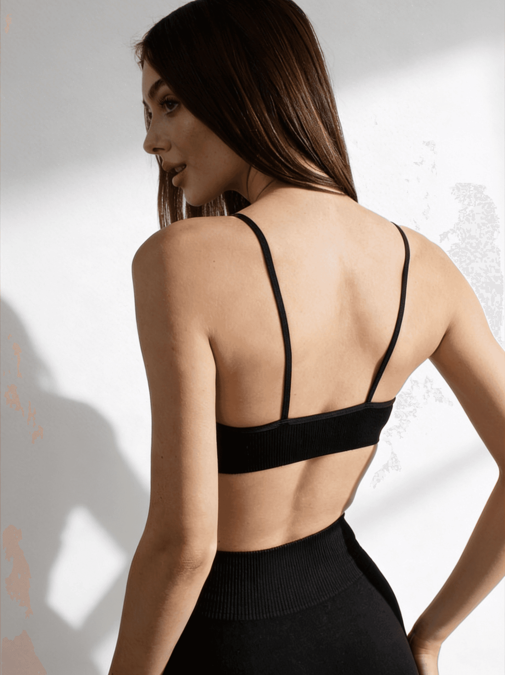 Nahtloses geripptes Top mit schmalen Trägern CAMI TOP RIB (black)