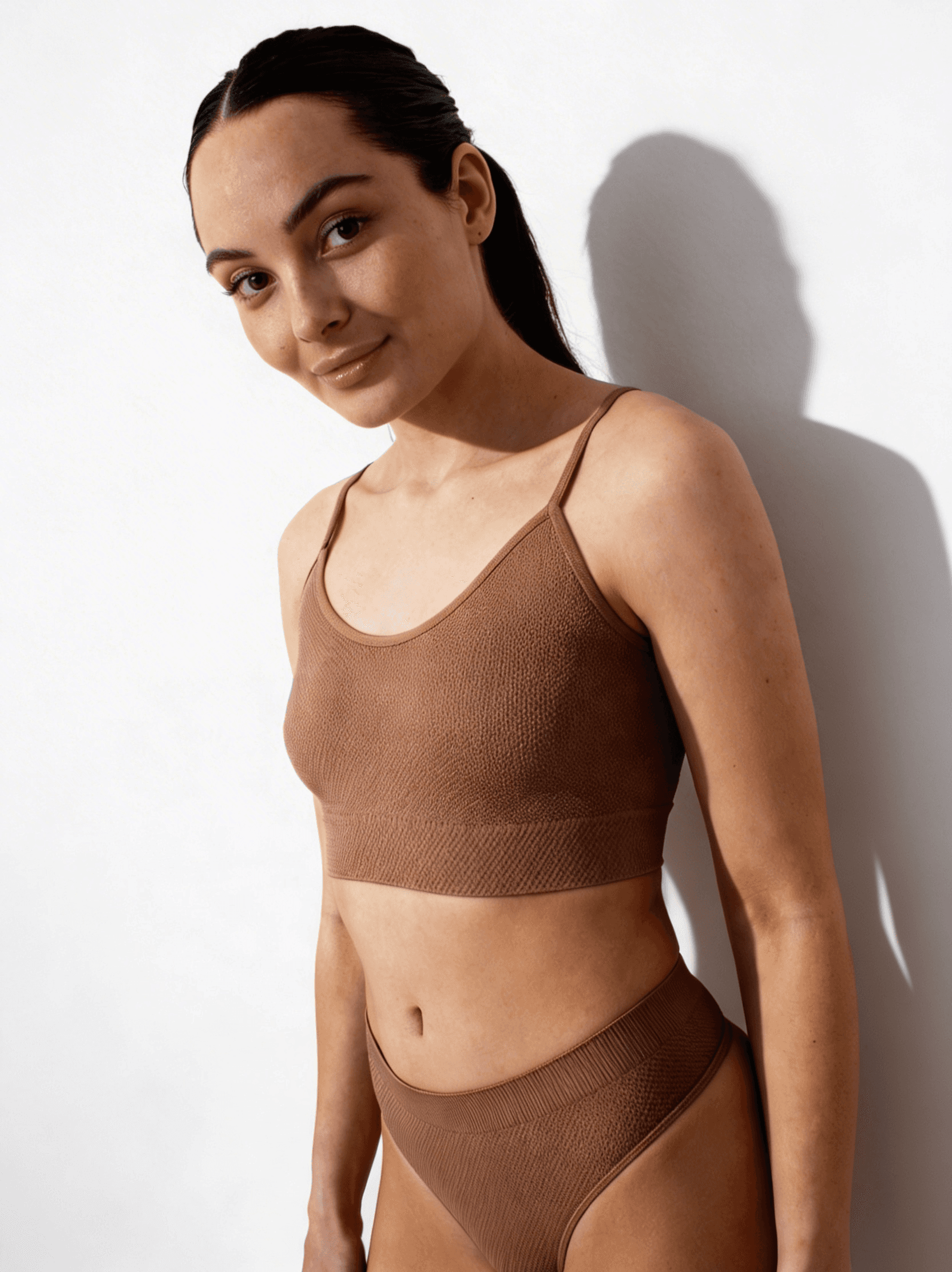 Nahtloses Top mit körniger Textur CAMI TOP GRAIN (mokko)
