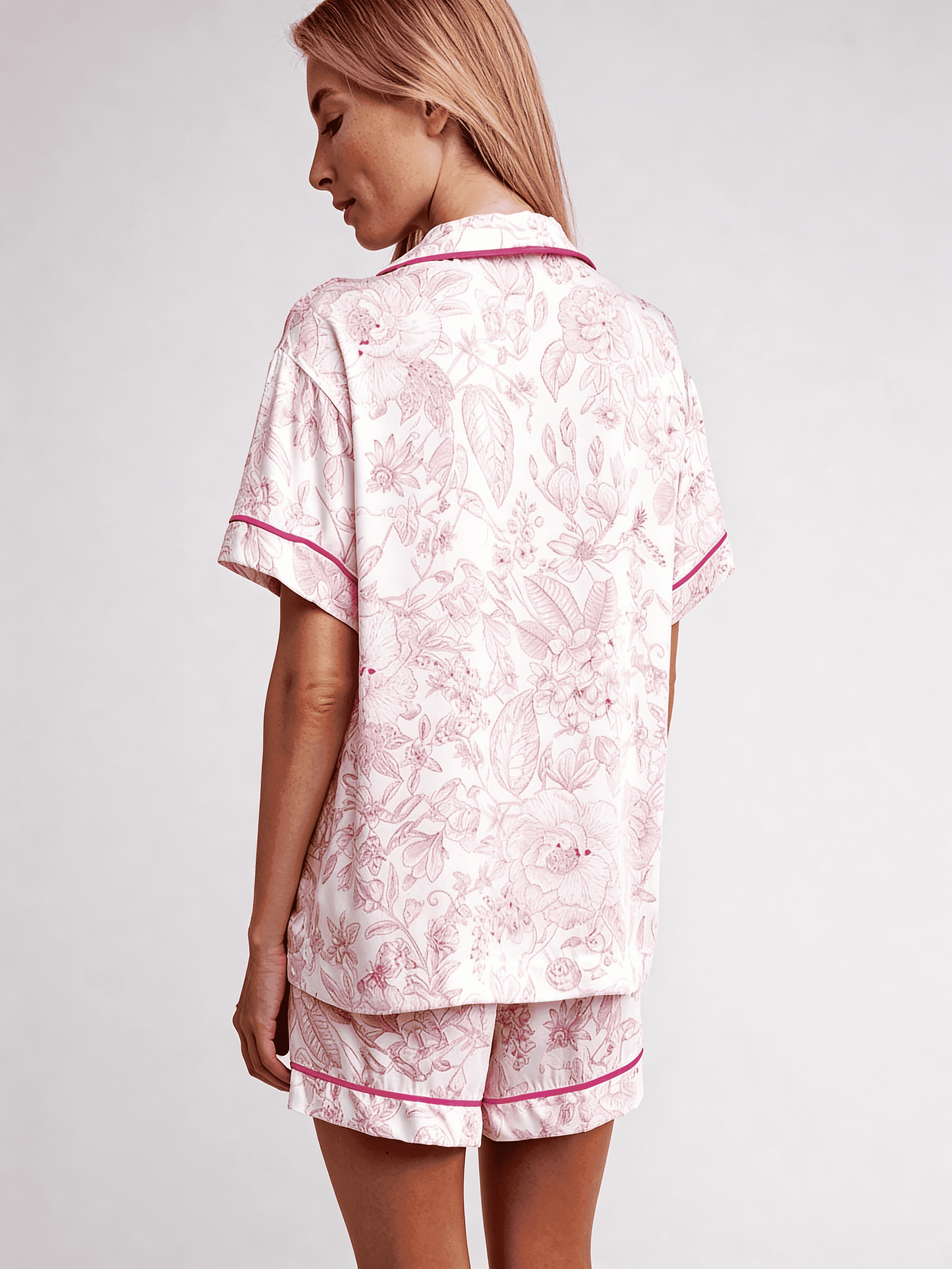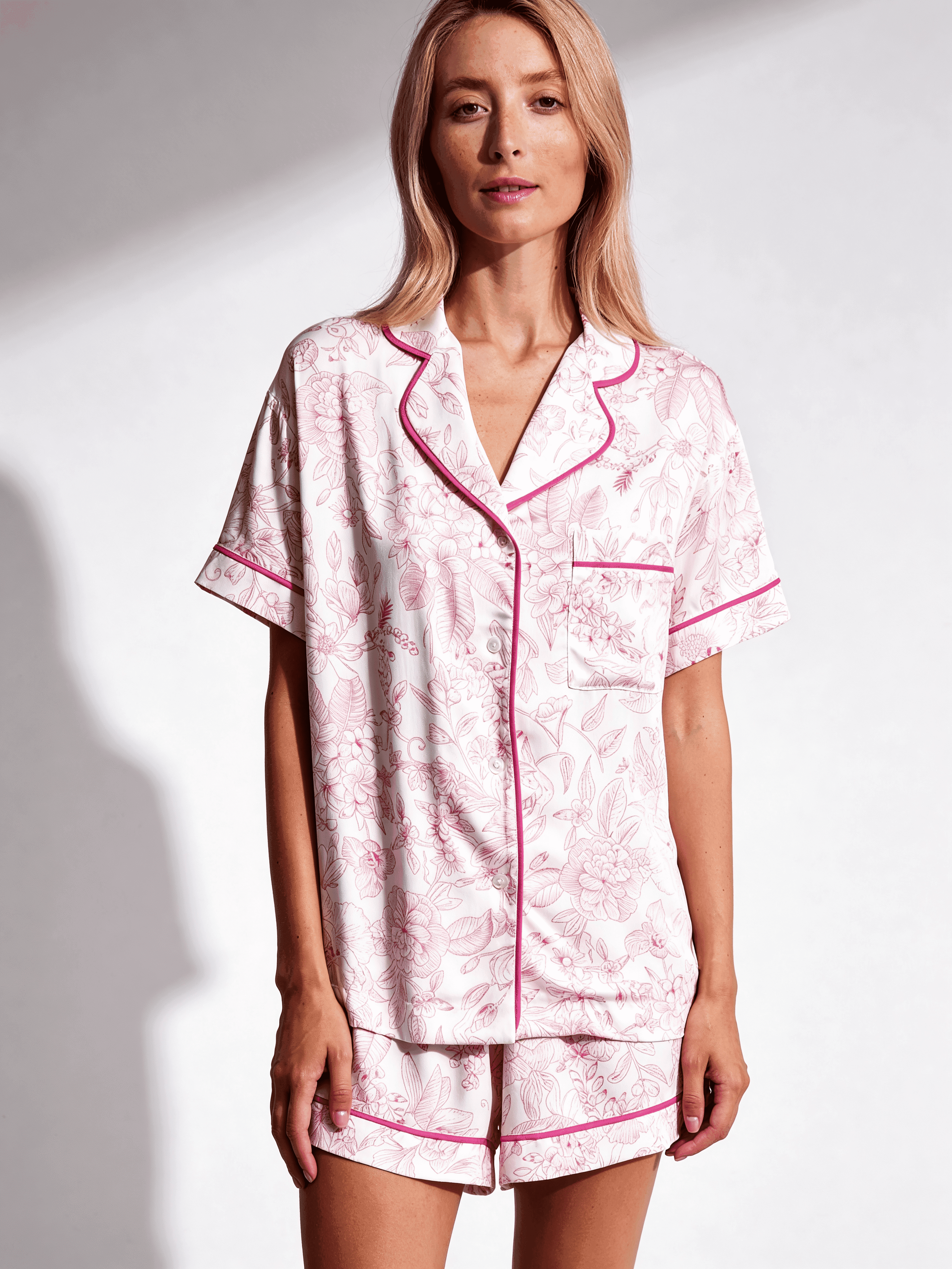 Pyjama mit Blumenmuster FLOSSED IN FLOWERS 6405/040 (white/pink floral print/magenta piping)